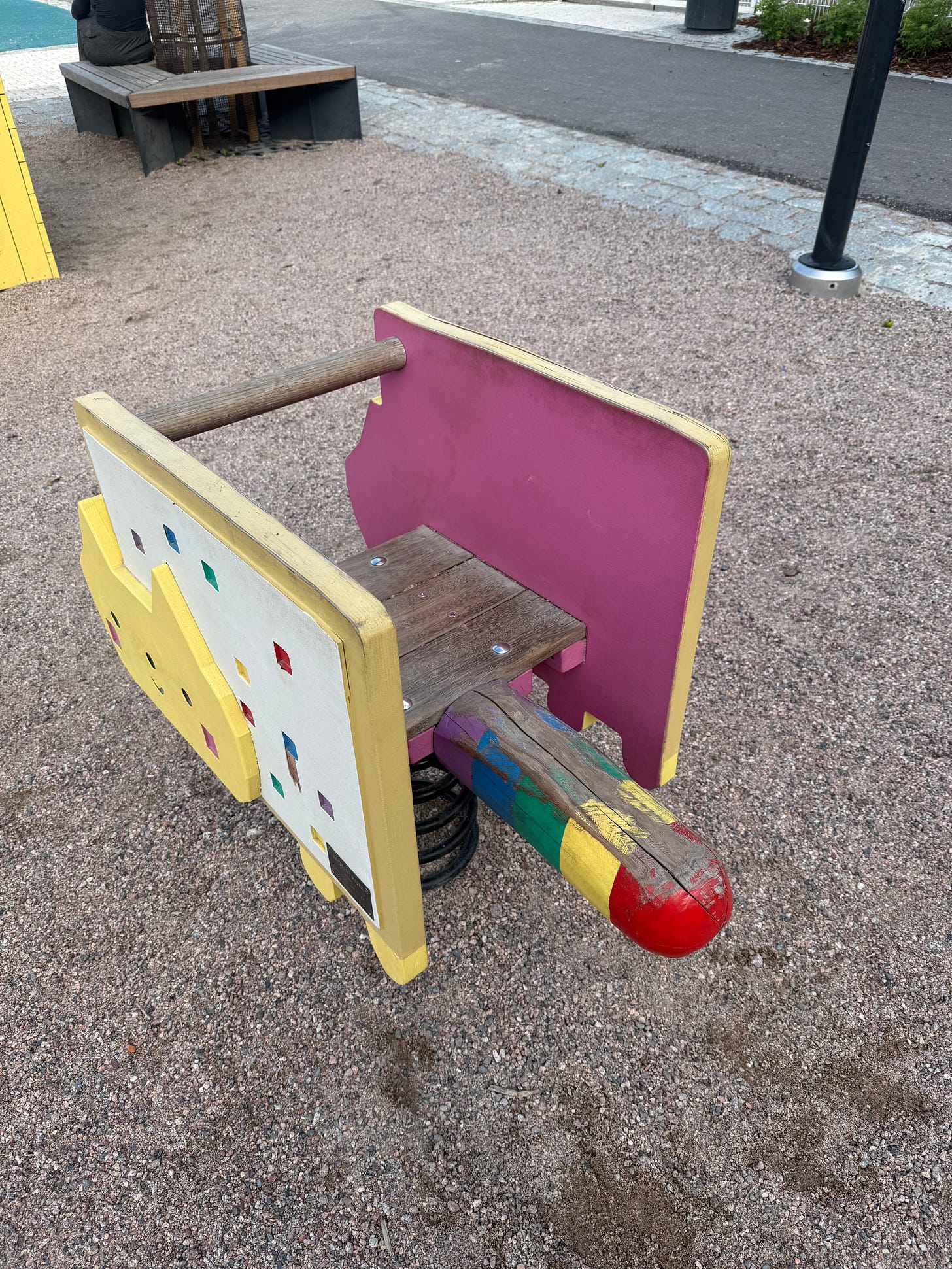 During the summer I’ve been visiting the computer playground. I keep seeing graceful wear and new features ship themselves. The cat sculpture’s tail, not its back, turned out to be the ride; a kid once lay flat and ran the carousel like a hamster wheel.