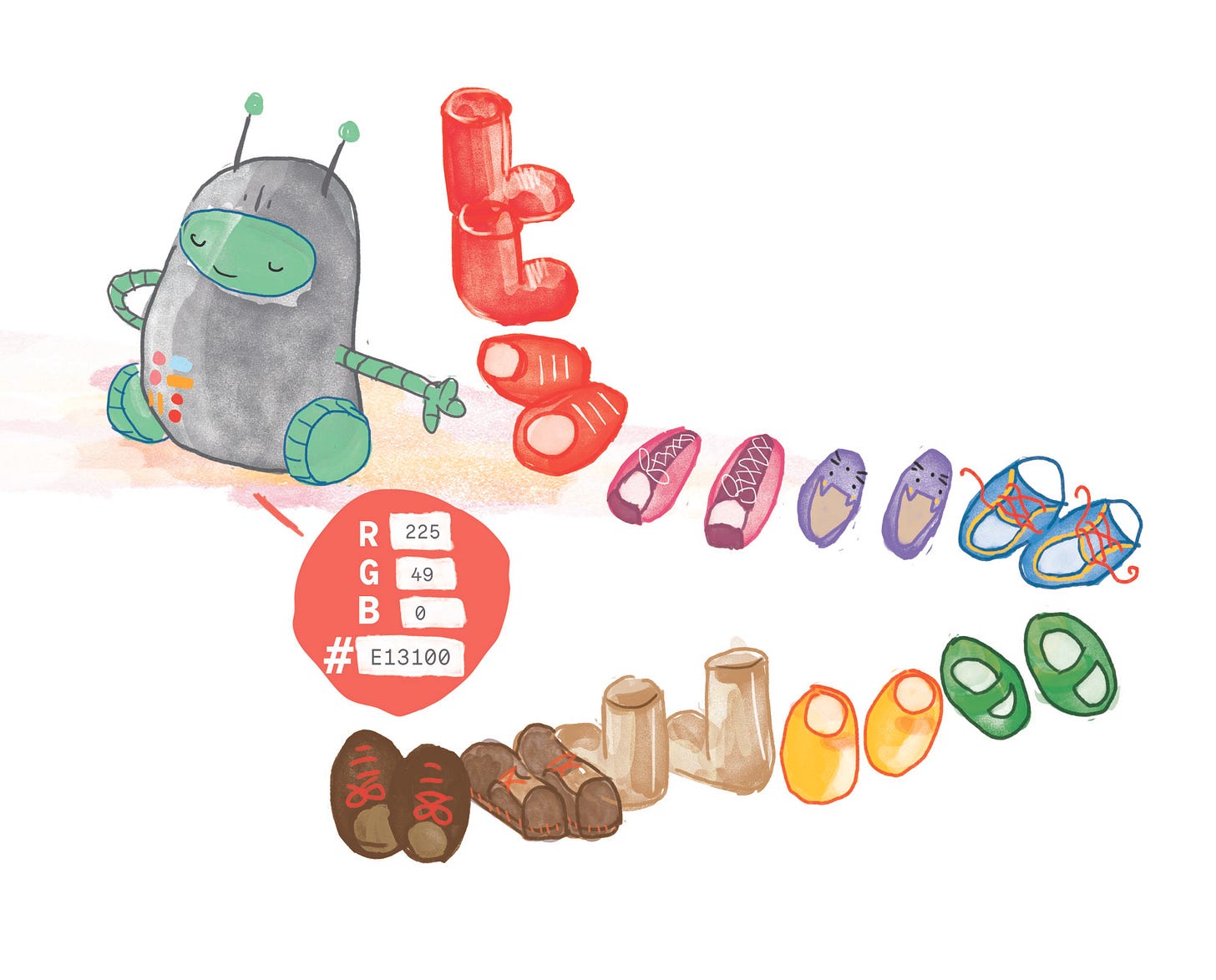 Pattern recognition activity for children to create their own fabric patterns. This could work well as a Holiday card decoration activity. From the first Hello Ruby book.